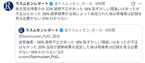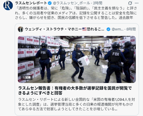 2/6Rasmussen Reports<FBI Raid: 39% Suspect Georgia Officials Hiding Election Fraud=FBIの捜査:39%はジョージア州当局が選挙不正を隠蔽していたと疑う>