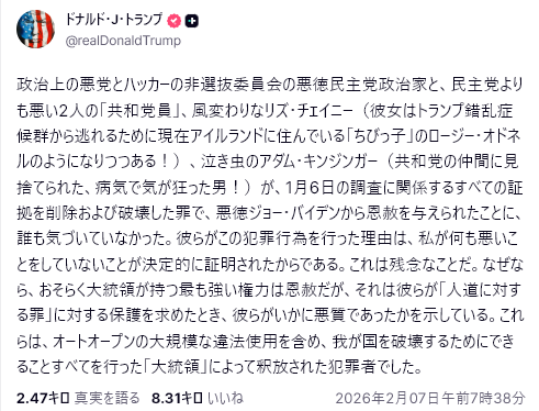 2/7阿波羅新聞網<置习于死地!川普重磅大刀砍下 它永远不属于中共国领土—台媒: 川普又出手挺台了!拨款459亿防卫台湾 严禁地图“画入中国领土”=習を死地に置く! トランプは大鉈を振るう 台湾は決して中国の領土に属さない――台湾メディア:トランプは、再び台湾支援に踏み切る! 台湾防衛に459億ドルを充当、地図に「中国領土に入れる」ことを厳しく禁止>
