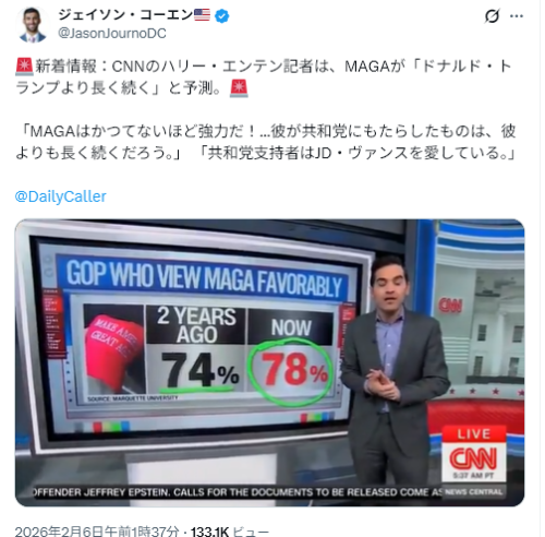 2/6The Gateway Pundit<CNN’s Harry Enten: MAGA will ‘Outlast Donald Trump’ (Video)=CNNのハリー・エンテン記者:「MAGAはドナルド・トランプよりも長く続くだろう」(動画)>