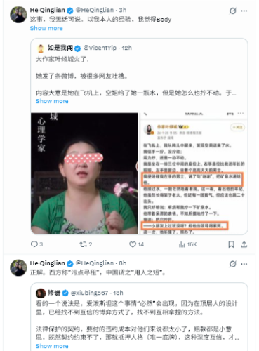 彼女はWeiboに投稿し、多くのネットユーザーからツッコミを受けた。