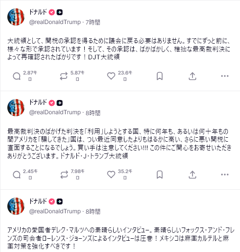 米国の専門家は心配する必要はない。最高裁判所の判事の中には文言主義者もいる。彼らは法文の解釈に基づき、緊急事態権限法に基づいて関税を課すことはできないと宣言したが、最高裁判所はトランプが適用できる法律を制限することはできない。適用範囲が狭く、効果が低いというだけでできる。下の表は、トランプ大統領が課すことができる税金を示している。x.com/aboluowang/sta…