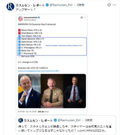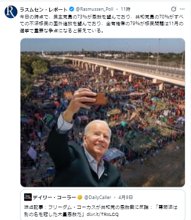 4/16Rasmussen Reports<70% of Republicans Want All Illegal Aliens Deported=共和党員の70%が不法移民全員の国外追放を望んでいる>