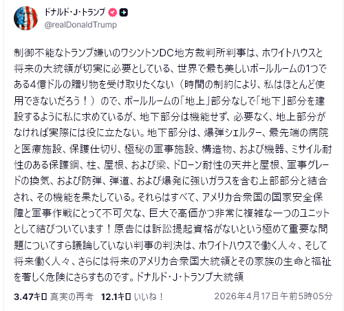 さすがに、ここ数日で側近たちなどが取りなしたのか、イランが通航料で潤い、核開発などを続けたり、中国との関係を維持発展させたりするのはまずいと考えなおしたか、急遽、逆封鎖ということを言い始めて実行に移していますが、トランプ大統領の考えは一貫せず、良くも悪くも、メインの目的を達成するために、状況を踏まえて柔軟に対応を変えるというディール・メーカーとしての要素が大きいのは確かです。
