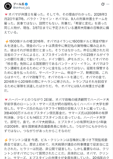 さらに、会話の内容やトランプ氏とエプスタイン氏の友人関係の性質について捜査が続けられた際、クリントン氏はそれ以上の決定的な詳細を提供できなかった。