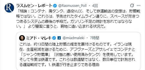 ホルムズ海峡封鎖で、氏の言う脱石油が進み、再生可能エネルギーに移行するという見立ては当たるかどうか?米国は石油採掘すればよいのだから、EVに替わるとは思えない。EVは中共を有利にするだけで、トランプが嫌っていて、テスラですら政府支援を受けられていない。