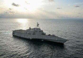 最近アラビア海に派遣されたインディペンデンス級沿海域戦闘艦「USSサンタバーバラ」から発射された無人攻撃機「LUCAS」(2025年12月16日アラビア海で撮影、米海軍のサイトより)