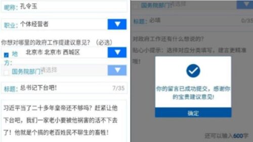 スクリーンショットによると、孔令玉の職業は自営業で、タイトルには「総書記、辞任せよ!」と書かれている。内容はこう書かれている。「習近平は20年以上も皇帝を務めてきたのに、まだ足りないのか?早く退陣させろ!私の家族は彼のせいで破滅するだろう!彼は民衆を苦しめる野獣だ。」