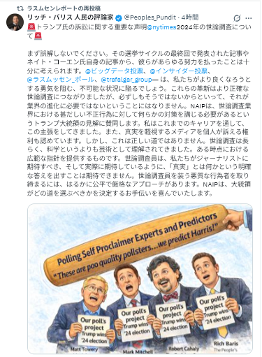 無能か捏造歪曲する世論調査会社は、訴訟により、淘汰されるべき。民主主義を歪めるもの。