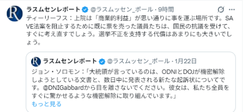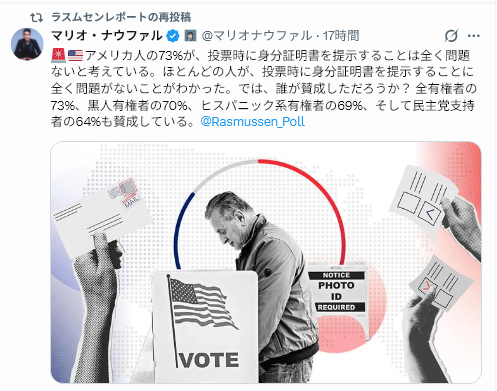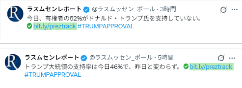 ラスムセンでも支持率は46%しかない。低落した原因を分析して、政策に生かした方が良い。