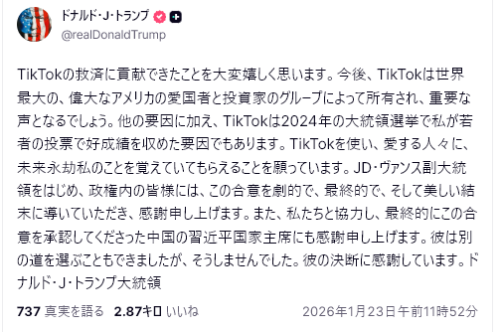 トランプ大統領は1月16日、イランで予定されていた大量処刑の中止を「評価する」と発言し、一時的にトーンを和らげた。