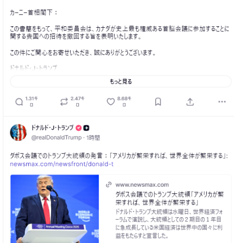 アポロネットの王篤然評論員は、トランプがダボス会議で、グリーンランド問題とベネズエラの攻撃を結び付けたことは、本質的に米国の世界における地政学的主導権の再確立を示すものであり、中国とロシアに対する公然たる宣戦布告であると述べた。中国とロシアの兵器の無力さを風刺することは、軍事的な屈辱であるだけでなく、戦略的抑止力でもある。中共にとって、米国が北極圏とラテンアメリカに同時に展開していることは、包囲網が急速に強化されていることを意味する。