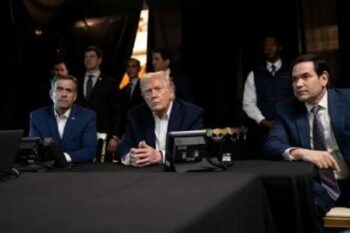 2026年1月3日、ベネズエラにおける米軍の作戦を監視するトランプ大統領(写真中央、提供:Molly Riley/The White House/AP/アフロ)