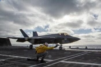 空母から発進するF-35ステルス戦闘機。艦上機型のC型でネットワーク中心の戦いの中核を担った(写真:米海軍ウェブサイトより)
