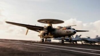 米海軍のE-2D早期警戒管制機。「空飛ぶレーダー」で、数百km遠方の敵機をキャッチし、友軍機を的確に指揮統制する能力を持つ(写真:米海軍ウェブサイトより)