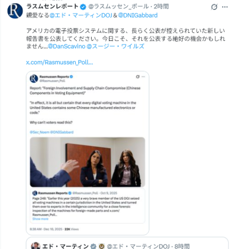 このように、ベネズエラ攻撃には、「ドンロー主義の本格化と西半球への引きこもり」という“表看板”とは別に、「アメリカの圧倒的な軍事力を中国に痛感させ、台湾に軍事侵攻したら容赦せずに中国本土の防空網を無力化する」と、プライドを傷つけた中国への復讐も込めた“裏看板”が隠されている──という見立ても存在する。