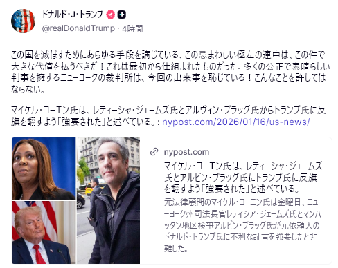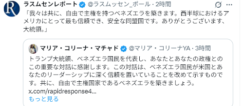 深川氏の記事では、氏の言うようにベネズエラ攻撃は中ロに向けて、自分の縄張りはキッチリ守るというサインを送り、世界に軍事力では中ロを遥かに凌いでいるのを見せつけた。