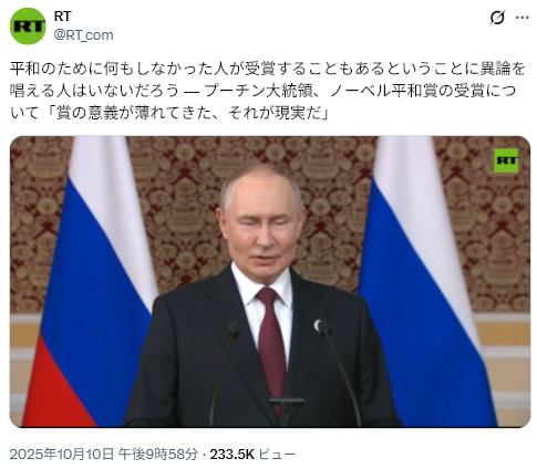 ウラジーミル・プーチン大統領さえもノーベル委員会の決定に驚愕した。