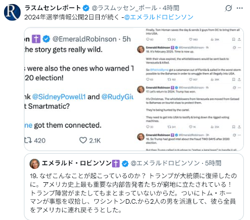 報道によると、高市はトランプとの電話会談から30分後、東京時間25日午前11時頃、記者会見を開き、会談内容を説明した。高市は、中国が米国と国際社会を丸め込もうと、虚偽と真実を織り交ぜた「情報戦」を展開していると指摘した。