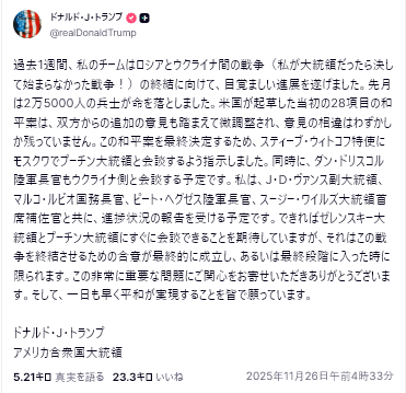 11/26阿波羅新聞網<川普跟习讲完就致电高市 日媒揭实情—跟习讲完就致电高市 读卖新闻:川普遏制北京但远离日中对立=トランプは習近平との電話会談直後に高市に電話 日本メディアが真相を暴露――トランプは習近平との会談直後に高市に電話 読売新聞:トランプは、中国を牽制しつつ日中対立から距離を置く>習近平が24日にトランプ米大統領と電話会談を行った後、問題の小さな部分を不当に拡大解釈し、大騒ぎした。トランプは直ちに高市早苗首相に電話した。読売新聞は、トランプが中国との交渉を有利に進めたい考えで、一方で中国を牽制しつつ、もう一方で日中対立から距離を置くと早くに分析していた。