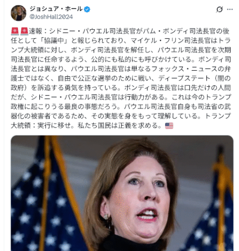 「マイケル・フリン司法長官」は「マイケル・フリン将軍」の誤り。小生もパム・ボンデイでは荷が重いと思っています。しかし、上院ですんなり承認されるかどうか?