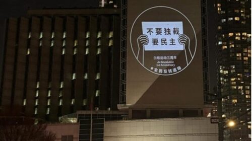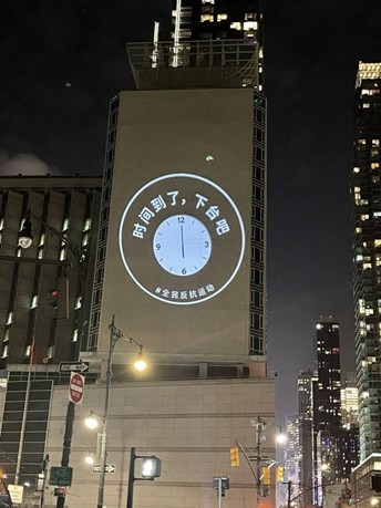 現場は静まり返っていたが、権力に直接抗議する緊張感が漂っていた。“看中国”は、このイベントを主導した米国に拠点を置く市民団体「中国行動」とその傘下組織「全民抵抗運動」の広報担当者、蘇雨桐にインタビューした。蘇氏は、このイベントは「白書運動」3周年を記念したものであり、明確な団体名で海外の中国大使館や領事館の建物に政治的な画像を公然と投影するのは初めてだと述べた。また、この手法は仲間に行動を呼びかけるためのものでもある。