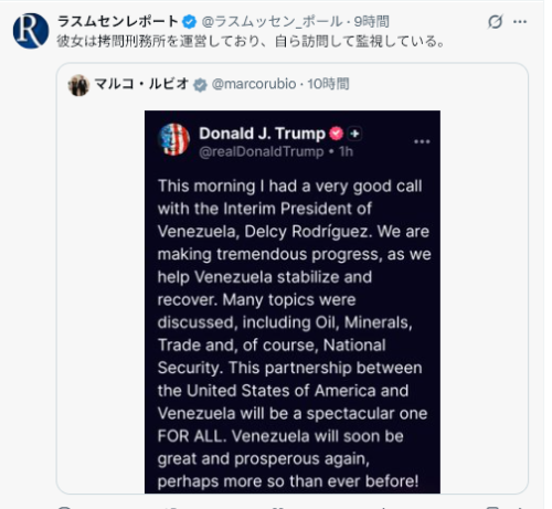 菅原氏の記事では、事象を表面的にしか捉えていない気がする。「ヤルタ2.0」なんてトランプは考えていないのでは。「ヤルタ1.0」は三国志の世界にもならなかった。容共のFDRと狡猾なスターリン、戦争狂のチャーチルが会談し、世界は英国の没落と東西分割を目の当たりにした。「ヤルタ2.0」は米・中・露で世界3分割との含意があるのかもしれませんが、トランプは西半球防衛の姿を見せながら、中・露の締め付けをしている。2025年国家安全保障戦略(NSS)で中共に甘い姿勢は取らない(対中政策の転換: 「責任ある利害関係者」育成策は失敗と断じ、経済的・軍事的対抗姿勢を鮮明化。中国の影響力排除と国内産業保護を重視)。西半球だけというのはトランプが良く使う目晦まし戦術で、本心は中・露を米国に対抗させないように考えているのでは?それがベネズエラ攻撃であり、今後のイラン攻撃と思っている。