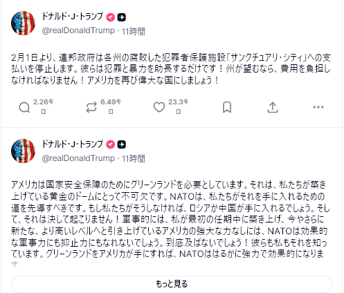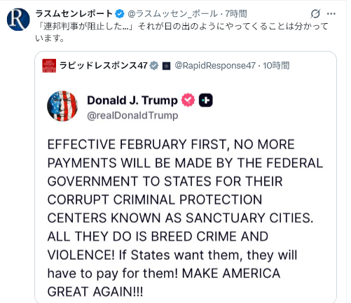 トランプの国際機関脱退やDEI封じ込めを甘く見ない方が良い。両方とも左翼・グローバリストが支配しているから、それを支持するのは敵方認定されるかもしれない。企業の中にはまだ米民主党の政策に執着しているのが多いが、米国は不正選挙ができなくなれば、民主党が大統領選だけでなく、議会選挙でも負ける確率が高くなる。共和党が大統領と議会をずっと支配し続けることを考慮しておかないと。