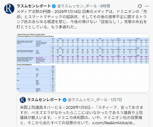 トランプは国内左翼も含め、海外左翼も潰すつもりでは。左翼の手先のオールドメデイアの信用度をこれからも益々落としていくことをするでしょう。オールドメデイアを見ないでSNSで情報を取る人達の時代がもうすぐ来ます。情報弱者にならないようにしましょう。