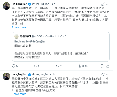 米国の大統領は任期中に国家安全保障報告書を発表し、その任期における外交政策の核心戦略を概説する。この報告書は明確に次のように述べている:「恒久的な世界支配」は「根本的に好ましくなく、達成不可能である」と強調し、縮小政策を採用し、米国の支配を確保するために西半球、特にラテンアメリカを優先し、必要に応じて「致死的な武力」を用いて支配を維持する。この戦略と連携するために…