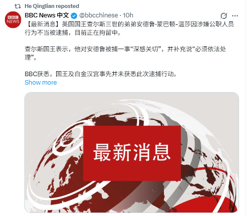 BBCニュース 中国語 @bbcchinese 10h
