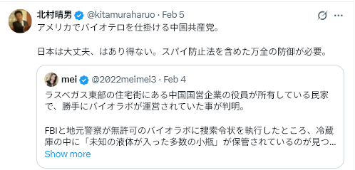 The Bureauによると、FBIとラスベガス警察はAirbnbで貸し出されていた個人宅を家宅捜索し、中国と関連のある違法な生物学研究所を発見した。この事件の主犯である朱嘉北は、共犯者に対し、「米国の侵略者と野心的な狼どもを倒す」ために、詐欺的な手段で米国の科学資産を盗んだと語っていた。