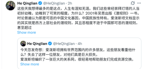 最近、私が最も考えているのは、人生は有限だが、知識は無限であるということである。かつて希望の光と崇めていた私たちは、あまりにもナイーブだった。滑稽なほどナイーブだった。なぜだろう?2001年、呉思は『Hidden Rules(暗黙のルール)』を出版した。これは中国文化の忌まわしい遺伝子、中国人の民族性に特有のものと広く考えられていた。エプスタイン文書は、西洋の上流社会の暗黙のルールを露呈している。それは中国の忌まわしい暗黙のルールに劣らず醜悪であり、もしかしたらそれを凌駕しているかもしれない。
