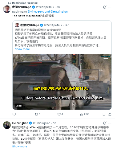 1/13、ミネアポリスで、アレックス・プレッティは腰に銃を携帯し、連邦法執行官に唾を吐きかけ、攻撃し、法執行車両のテールランプを激しく蹴った後、警察官は彼を制圧し、その場で解放した。