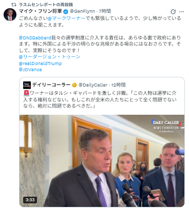 PBSによると、「国家情報を監督する委員会のトップ民主党員であるマーク・ワーナー上院議員とジム・ハイムズ下院議員は、ドナルド・トランプ大統領の2020年選挙敗北に関する陰謀論の中心となっているジョージア州の選挙事務所に対する今週のFBIの捜索に国家情報長官のトゥルシ・ギャバードが同席していた理由を説明するよう求めている。」
