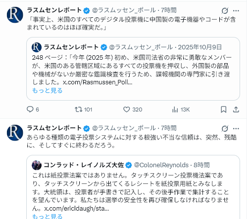 トランプ氏は、トランプ・ケネディ・センターで行われたメラニア夫人の新作映画の上映会に出席し、記者団に対し、ギャバード氏は「選挙の安全確保に懸命に取り組んでおり、非常に良い仕事をしている」と語った。