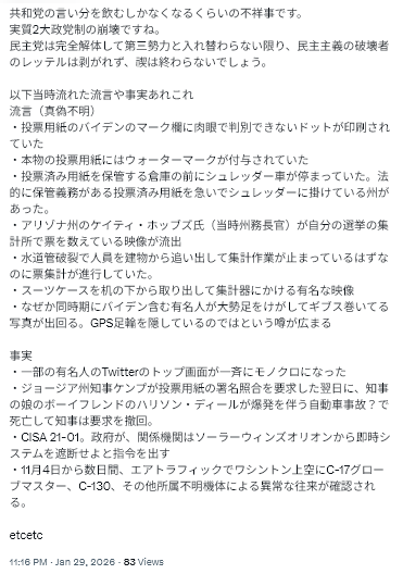 民主党は些末な問題でクレームするより、本質的な問題を解決するのに頭を使うべき。ことは民主主義の基盤とも言うべき選挙の不正なのに。然も外国が関与している。