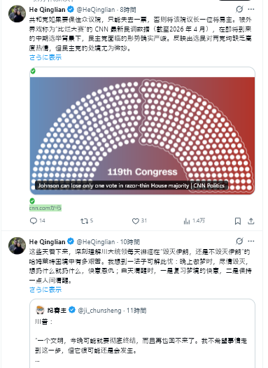 共和党が下院の過半数を維持するには、1議席しか失えない。そうならなければ、議長の座は交代するだろう。外部から「底辺の競争」と呼ばれている中間選挙で、2026年4月時点の最新のCNN世論調査は、民主党は中間選挙を前に、まさに深刻な状況に直面していることを示している。これは両党に対する有権者の熱意の低さを反映しているが、民主党の状況は特にデリケートだ。 cnn.comより