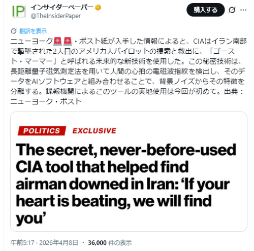 作戦の経緯を再現すると、米特殊部隊は、そびえ立つ山々に囲まれ敵に包囲されながらも、死傷者ゼロの記録でパイロットを救出した。これは、現在のイラン指導部と革命防衛隊の作戦上の期待と将来計画に、ほぼ完全な心理的打撃を与えた。彼らは多数の部隊と地元民兵を動員し、地形への精通をてこに米軍関係者を捕らえ、米国へのカードにしようとしたが、最終的には壊滅的な敗北を喫した。これは間違いなく、彼らの心理的崩壊の出発点となった。トランプ大統領の指揮下にある米軍が、マドゥロ大統領を生け捕りにし、ハメネイ師を斬首し、そして今日、数万人の敵の中から米人パイロットを救出したことは、世界各国にとって、手の届かないレベルの作戦構想と軍事力を示すものとなった。