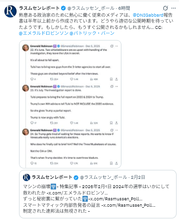 中共軍事委副主席の張又侠と劉振立参謀総長への調査後、習近平国家が全軍の動員権限の凍結を命じたが、13の集団軍のうち11が命令に従わず、異例の「ソフトな抵抗」に終わったという衝撃的な噂がある。政府当局と軍当局はこの件について異例の沈黙を守り、《解放軍報》だけが「新しい血の入替」という表現を用いて粛清を示唆し、習近平交代の可能性を示唆した。さらに、安徽省では軍用車両の大規模な異例の動きが観測され、トランプ米大統領はカナダに対し中国との協定締結に反対を表明し、そうしなければ「アイスホッケー」を失うと警告した。