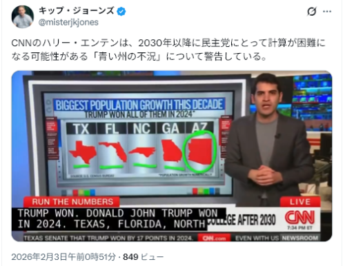 2/3The Gateway Pundit<‘Blue State Depression’: CNN Analyst Says Dems’ ‘Blue Wall’ Is Cracking – Their Immigration Ponzi Scheme Can’t Save Them=「青い州の不況」:CNNアナリスト、民主党の「青い壁」が崩壊しつつあると指摘 ― 移民ポンジスキームでは救えない>