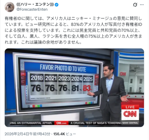 議会は投票時のID確認を義務付けるべき。左翼CNNの調査でもそう出ているのだから。