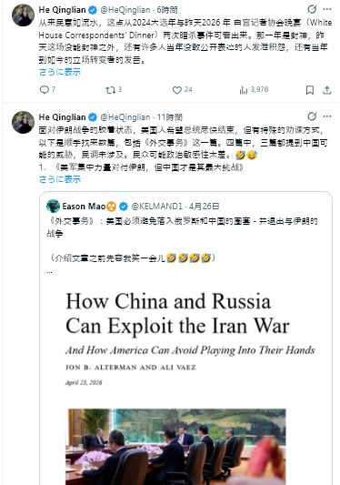 何清漣 @HeQinglian 6h