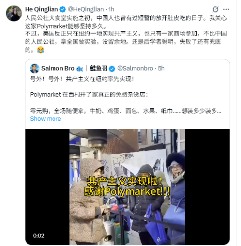 しかし、米国が共産主義を実践しているのはNYだけで、参加しているショッピングモールもたった1つだけ。妥協の余地なく全国規模で実験を行った中国人民公社とは状況が異なる。後から学ぶ人は賢く、失敗してもセーフティネットがある😂