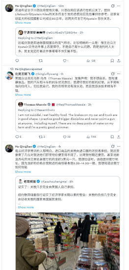 トーマス・マシー下院議員は次のようにツイートした。「自殺したいと思っていない。健康的な食事をしている。自分の車とトラックのブレーキはよく利いている。私は引き金を引く際の規律を守り、自分自身を含め、誰にも銃を向けない。農場には深いプールはないが、私は泳ぎが得意である」