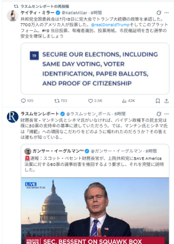 議会共和党、特に上院はだらしない。自分達も不正選挙のおこぼれを頂戴しているのかと疑ってしまう。