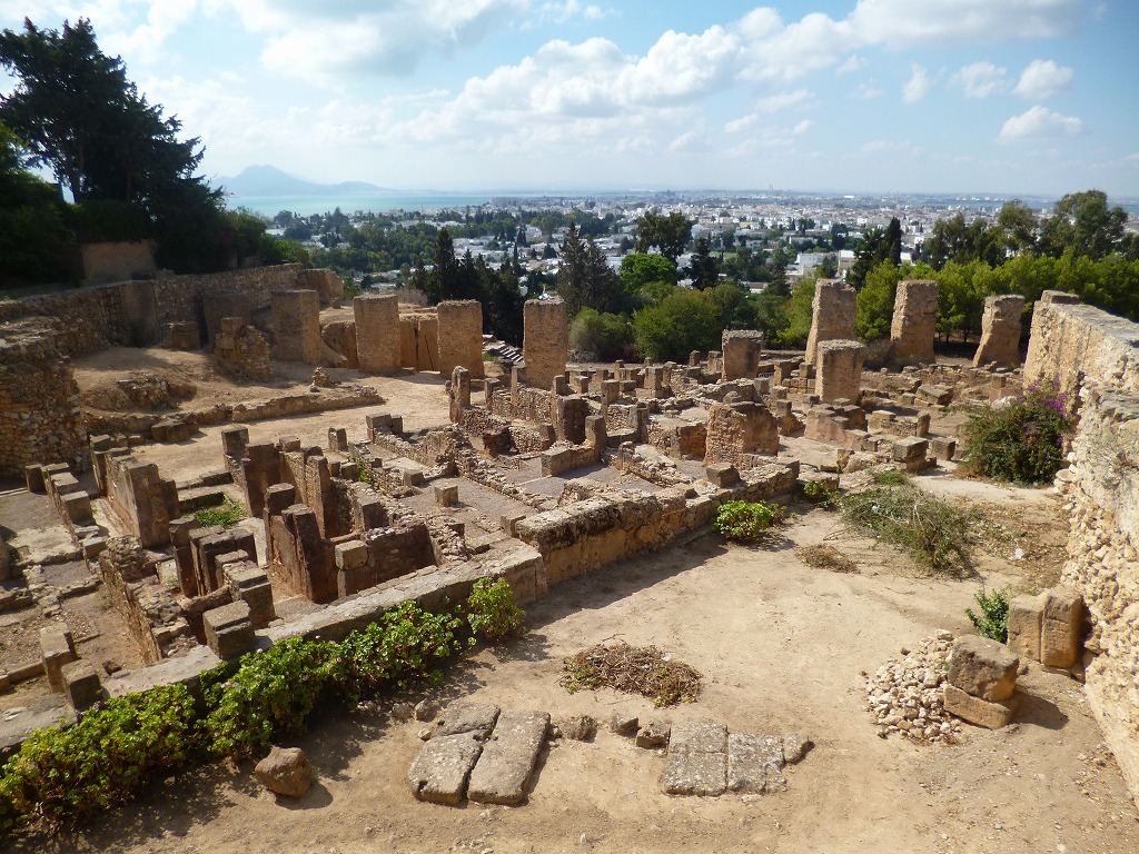 現地5日めはチュニスから15Kmのチュニジアンブルーの観光地シデイブサイド、カフェでミントテイを飲む。またお土産店では陶器を購入。シデイブサイドの傍のカルタゴを見学。今やカルタゴやガマルタは高級リゾート地でマンション等が建っている。ローマに滅ぼされたイメージはなし。下の博物館内のローマ時代の地図の丸い所はカルタゴ時代からの軍港。ローマ人はカルタゴに何も生育しないように塩をまいたのでフェニキア人のものは残っていない。カルタゴから130Km離れたドウッガの遺跡を見学。夕食はマールーフ(北アフリカ音楽とスペイン・アンダルシアから逃れたイスラム教徒の音楽の融合)の生演奏を聴きながらタジン料理をいただく。残念なことにここはアルコールは禁止で食事の楽しみが半減。
