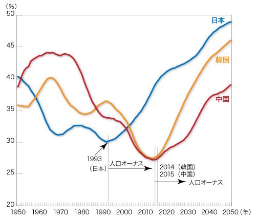鈴置:保守論壇の大御所、朝鮮日報の金大中(キム・デジュン)顧問も2014年11月11日に「韓国の行き詰まり」を書いたのですが、そのコラムの見出しが、まさに「我々は下り坂を行く」(韓国語)でした(注2)。(注2)この記事は朝鮮日報の有料会員だけが読める。なお、韓国の高齢化のスピードはこれから加速するので、“下り坂”では日本を追い越してしまうかもしれない、との恐怖感が韓国の専門家の間には生まれています。