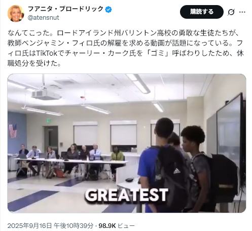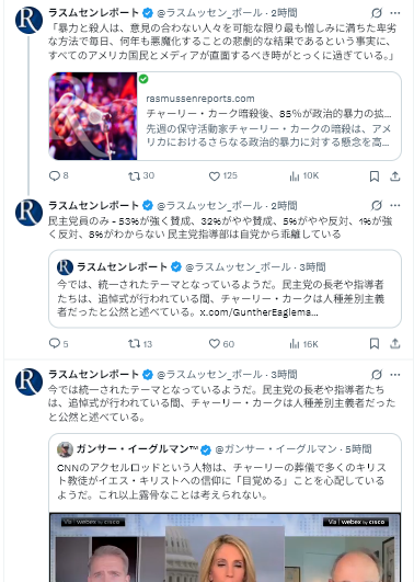 トランプ氏はカーク氏の追悼集会で「彼は偉大なヒーローであり、米国の自由の殉教者だ」と称えましたが、“自由”を強調しながらテレビ局の自由を縛る行動に出ているのです。一方、カーク氏殺害が本当に左派によるものだったとしたら、それは言論を暴力で封じ込めることであり、到底許されません。