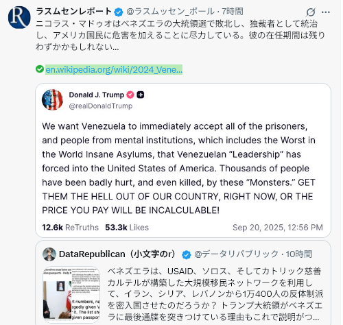 9/29阿波羅新聞網<川普彻底终结中共对美控制—纳瓦罗:川普新关税将终结中共对美控制=トランプは、中共による対米コントロールを完全に終結 ― ナバロ:トランプの新関税は中共による対米コントロールを終わらせる>トランプ大統領は25日、Truth Socialに複数の投稿を行い、医薬品、家庭用品、大型トラックを対象とした新たな関税措置を10/1に発効すると発表した。トランプはこの措置が米国の製造業を強化し、国家安全保障を守ると主張したが、同時に反発を招きかねない懸念も生じている。WHの通商顧問ピーター・ナバロは26日、FOXビジネスの「モーニング・ウィズ・マリア」でこの関税政策を擁護し、サプライチェーンを国内に戻し、中国による米国コントロールを終わらせると述べた。