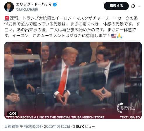 カーク氏の死はトランプ氏にとって大きな損失であり、トランプ氏は事件後、ただちに「急進的な左派が国家に大きな損害を与えた。この問題は必ず解決してみせる」と断言しました。そして、トランプ氏は犯人に死刑を要求しました。